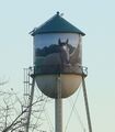 The water tower consists of a cone, a cylinder, and a hemisphere. Its volume can be calculated using solid geometry.
