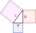 The Pythagorean theorem states that the sum of the areas of the two squares on the legs (a and b) of a right triangle equals the area of the square on the hypotenuse (c).
