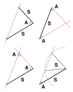 Triangles are congruent if they have all three sides equal (SSS), two sides and the angle between them equal (SAS), or two angles and a side equal (ASA) (Book I, propositions 4, 8, and 26). Triangles with three equal angles (AAA) are similar, but not necessarily congruent. Also, triangles with two equal sides and an adjacent angle are not necessarily equal or congruent.