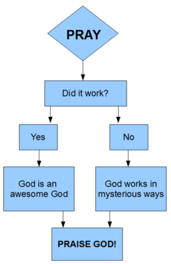 Though many "studies" have attempted to prove that prayer gets results, there is no evidence of divine intercession actually occurring, other than occasional applications of the Texas sharpshooter logical fallacy.