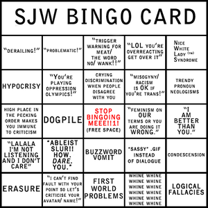 With its evolution into a conservative dogwhistle, "SJW" has more or less become a substitute for whatever sort of bigoted epithet the speaker wanted to say but knows that they cannot without being labeled a bigot. However, when the ideological opponent is a white male ally, then the reactionaries are free to say "beta" or "cuck" rather than self-censor with "SJW". Another idea is that "SJW" has replaced "Liberal" as a pejorative; that way, the speaker doesn't have to automatically identify as a waste of flesh conservative when using it as a snarl word.[33]