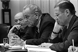 In 1967, Defense Secretary McNamara commissioned a study of the Vietnam War, motivated by his increasing fear that the war was not winnable.[13] According to Ellsberg, McNamara had already begun to intensely regret his decision to urge President Johnson to keep bombing Vietnam.[13] Aiming to create a comprehensive and truthful history of the war, McNamara placed the project in the hands of his most trusted colleagues and strove to keep the secret from the White House.[14] This aim resulted in tight restrictions for the research team, preventing them from requesting interviews, contacting the military, or consulting with other departments.[14] The completed study was 47 volumes long, totaling 7,000 pages. We know this, of course, because Robert McNamara kind of sucked at keeping secrets.