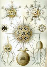 Radiolarian protist as drawn by Haeckel | Foraminiferans, and some marine amoebae, ciliates and flagellates. | ||