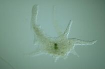 Phaeocystis is an important algal genus found as part of the marine phytoplankton around the world. It has a polymorphic life cycle, ranging from free-living cells to large colonies.[167] It has the ability to form floating colonies, where hundreds of cells are embedded in a gel matrix, which can increase massively in size during blooms.[168] As a result, Phaeocystis is an important contributor to the marine carbon[169] and sulfur cycles.[170] Phaeocystis species are endosymbionts to acantharian radiolarians.[171][172]