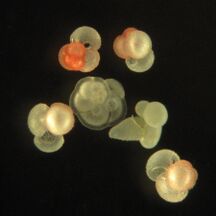 Shells (tests), usually made of calcium carbonate, from a foraminiferal ooze on the deep ocean floor