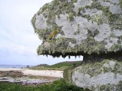 Coccolithophores are the largest global source of biogenic calcium carbonate, and significantly contribute to the global carbon cycle.[189] They are the main constituent of chalk deposits such as the white cliffs of Dover. | |||