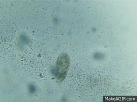 Blepharisma americanum swimming in a drop of pond water with other microorganisms