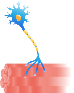 Motor unit recruitment is the activation of additional motor units to accomplish an increase in contractile strength in a muscle.[1] A motor unit consists of one motor neuron and all of the muscle fibers it stimulates. All muscles consist of a number of motor units and the fibers belonging to a motor unit are dispersed and intermingle amongst fibers of other units. The muscle fibers belonging to one motor unit can be spread throughout part, or most of the entire muscle, depending on the number of fibers and size of the muscle.[2][3] When a motor neuron is activated, all of the muscle fibers innervated by the motor neuron are stimulated and contract. The activation of one motor neuron will result in a weak but distributed muscle contraction. The activation of more motor neurons will result in more muscle fibers being activated, and therefore a stronger muscle contraction. Motor unit recruitment is a measure of how many motor neurons are activated in a particular muscle, and therefore is a measure of how many muscle fibers of that muscle are activated. The higher the recruitment the stronger the muscle contraction will be. Motor units are generally recruited in order of smallest to largest (smallest motor neurons to largest motor neurons, and thus slow to fast twitch) as contraction increases. This is known as Henneman's size principle.[4]