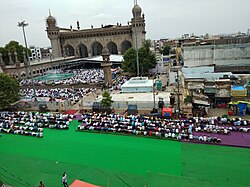 Following the September 11 attacks, several American mosques were targeted in attacks ranging from simple vandalism to arson.[159] Furthermore, the Jewish Defense League was suspected of plotting to bomb the King Fahd Mosque in Culver City, California.[160] Similar attacks occurred throughout the United Kingdom following the 7 July 2005 London bombings. Outside the Western world, in June 2001, the Hassan Bek Mosque was the target of vandalism and attacks by hundreds of Israelis after a suicide bomber killed 19 people in a night club in Tel Aviv.[161][162][163] Although mosquegoing is highly encouraged for men, it is permitted to stay at home when one feels at risk from Islamophobic persecution.[164]