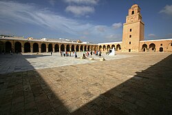 In many mosques, especially the early congregational mosques, the prayer hall is built in the hypostyle form (the roof held up by a multitude of columns).[75] One of the finest examples of the hypostyle-plan mosques is the Great Mosque of Kairouan in Tunisia.[76]