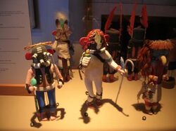 The kachina concept has three different aspects: the supernatural being, the kachina dancers, and kachina dolls (small dolls carved in the likeness of the kachina, that are given only to those who are, or will be responsible for the respectful care and well-being of the doll, such as a mother, wife, or sister).[2]