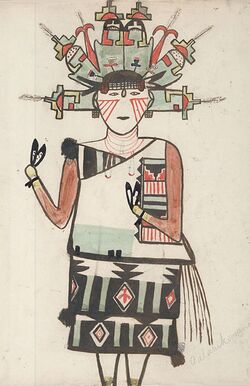 According to Clara Lee Tanner, "...kachina involves three basic concepts: first, a supernatural being; second, the masked dancer (and the Zuni is a kachina when he wears the mask), and third the carved, painted, and dressed doll." The list of Zuni kachinas includes:[8]