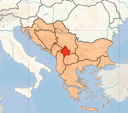 The Battle of Kosovo is a foundational event of Serbian nationalism. It was fought on 15 June 1389 (28 June old style) in Kosovo field in the east of the present-day territory. On one side was Serbian prince Lazar Hrebeljanović and his army along with some Knights Hospitaller under the Croat John of Palisna and possibly other nationalities.[2] There were Albanians and Bosnians who took part in the battle alongside Serbia as at that time they were Orthodox Christians.[3] On the other side was Sultan Murad Hüdavendigâr and a multi-ethnic (through Jannisary regiments) Ottoman army slowly conquering south-east Europe. There is a shortage of evidence or reliable accounting of what exactly happened that day. It seems casualties on both sides were vast, with both leaders killed, and the Ottomans were seriously weakened, although the size of the battle has subsequently been exaggerated. There are also claims of treachery, with Serbs betraying their own land; Milos Obilic or Vuk Brankovic are fingered, although this may be a folklore based error regarding the long term defeat and fall of Serbia.[3]