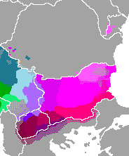 Macedonian dialects form a continuum with Bulgarian dialects forming the Eastern South Slavic sub-group; they in turn form a broader continuum with Serbo-Croatian through the transitional Torlakian dialects. Throughout history Macedonian has been often referred to as a variant of Bulgarian. It was standardized in Yugoslavia in 1945 based on the central-western dialects of the region of Macedonia.[1] Macedonian was recognized as a minority language in Bulgaria from 1946 to 1948. Though, it was subsequently described in Bulgaria again as a dialect or regional norm of Bulgarian.[2]