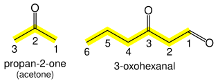 3 is pentan-2-one. If a higher precedence suffix is in use, the prefix "oxo-" is used: CH