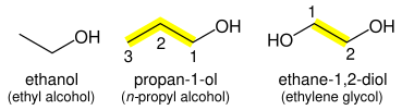 2OH is propan-1-ol. The suffixes -diol, -triol, -tetraol, etc., are used for multiple –OH groups: Ethylene glycol CH