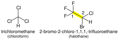 3 (chloroform) is trichloromethane. The anesthetic halothane (CF