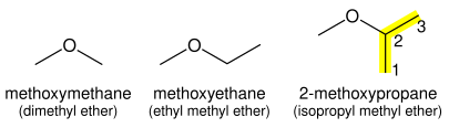 3 could also be called 2-oxabutane, and an epoxide could be called oxacyclopropane. This method is especially useful when both groups attached to the oxygen atom are complex.[4]