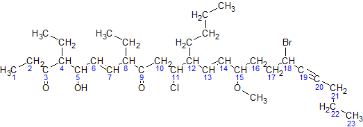 | Number of carbons | 1 | 2 | 3 | 4 | 5 | 6 | 7 | 8 | 9 | 10 | 11 | 12 | 13 | 14 | 15 | 16 | 17 | 18 | 19 | 20 |