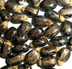 The seeds of Ricinus communis are commonly crushed to extract castor oil. As ricin is not oil-soluble, little is found in the extracted castor oil.[9] The extracted oil is also heated to more than 80 °C (176 °F) to denature any ricin that may be present.[9] The remaining spent crushed seeds, called variously the "cake", "oil cake", and "press cake", can contain up to 5% ricin.[36] While the oil cake from coconut, peanuts, and sometimes cotton seeds can be used as cattle feed or fertilizer, the toxic nature of castor beans precludes their oil cake from being used as feed unless the ricin is first deactivated by autoclaving.[37] Accidental ingestion of Ricinus communis cake intended for fertilizer has been reported to be responsible for fatal ricin poisoning in animals.[28][38]