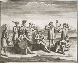 Inevitably, Haudenosaunee slavery practices changed after European contact. With the arrival of European diseases came the increase in Haudenosaunee peoples obtaining captives as their population kept decreasing.[259][260] During the 17th century, Haudenosaunee peoples banded together to stand against settlers.[261] By the end of the century, Haudenosaunee populations were mostly made up of captives from other nations.[242] Among the Indigenous groups targeted by the Haudenosaunee were the Wyandot who were captured in such large numbers that they lost their independence for a large period of time.[242][262] “Mourning wars” became essential to rebuild numbers, but also Haudenosaunee warriors began targeting French and later English colonizers.[242][263] Similarly to Indigenous slaves, European slaves were tortured by the Haudenosaunee using finger mutilation and sometimes cannibalism.[244] European captives did not make for good slaves though because they resisted even more so than Indigenous captives and they did not understand rituals such as renaming and forgetting their past.[264] For this reason most European captives were either used as ransom or murdered upon arrival to Haudenosaunee territory.[242] A lot of Europeans were not captured though, and instead they became trading partners with the Haudenosaunee.[259] Indigenous slaves were now being traded amongst European settlers and some slaves even ended up in Quebec households.[259] In the end, European contact lead to adoptees outnumbering the Haudenosaunee in their own communities, these slaves were too hard to control in large numbers and so came the finality of Haudenosaunee slavery practices.[242]