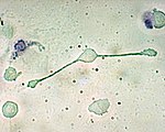Basophils and eosinophils are cells related to the neutrophil. When activated by a pathogen encounter, histamine-releasing basophils are important in the defense against parasites and play a role in allergic reactions, such as asthma.[2]