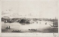 On 20 March 1840 in the Manukau Harbour area where Ngāti Whātua farmed, paramount chief Apihai Te Kawau signed the Treaty of Waitangi.[30] Ngāti Whātua sought British protection from Ngāpuhi as well as a reciprocal relationship with the Crown and the Church. Soon after signing the treaty, Ngāti Whātua Ōrākei made a strategic gift of 3,500 acres (1,400 ha) of land on the Waitematā Harbour to the new Governor of New Zealand, William Hobson, for the new capital, which Hobson named for George Eden, Earl of Auckland, then Viceroy of India.[31][32][33] Auckland was founded on 18 September 1840 and was officially declared New Zealand's capital in 1841,[34][35] and the transfer of the administration from Russell (now Old Russell) in the Bay of Islands was completed in 1842. However, even in 1840 Port Nicholson (later renamed Wellington) was seen as a better choice for an administrative capital because of its proximity to the South Island, and Wellington became the capital in 1865. After losing its status as capital, Auckland remained the principal city of the Auckland Province until the provincial system was abolished in 1876.[36]