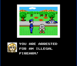 Players must be wary of dice games that have dangerous risks in addition to card games - they randomly appear like monster battles in traditional role-playing games. Many buildings including airports, police stations, and casinos either help or hinder the player's attempts to earn enough money on the slot machines for passage to the wealthier district.[4] Guns (in the form of a pistol) can be found that can protect the player against muggers.[1] However, the police will confiscate the weapon from this player once they arrive at a certain area in Manhattan.[1] Pachiko-kun (the player) will also be arrested and will be held unless a $100,000 ($206,255.03 in today's money) bail can be paid in full.[4]