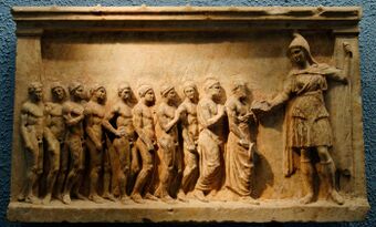 According to Appian, Mark Antony is responsible for the statement that Augustus sought to secure the goodwill of Cotiso by giving him his daughter, and he himself marrying a daughter of Cotiso.[43] According to Suetonius, Cotiso refused the alliance and joined the party of Mark Antony.[44] Suetonius (LXIII, Life of Augustus) says Mark Antony wrote that Augustus betrothed his daughter Julia to marry Cotiso to create an alliance between the two men. This failed when Cotiso betrayed Augustus. According to Cassius Dio, the story about the proposed marriages is hardly credible and may have been invented by Mark Antony as propaganda to offset his own alliance with Cleopatra.[44]