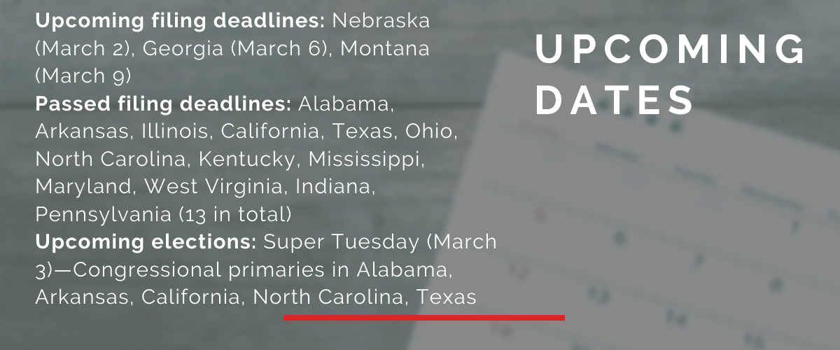 Meadows announced his retirement a day before the Dec. 20 filing deadline. All candidates entered the race after his announcement. Meadows assumed office in 2013 and is a former chairman of the House Freedom Caucus.