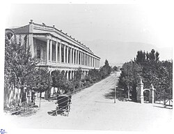 After World War I, the constituent assembly elected Reza Shah of the Pahlavi dynasty as the new monarch, who immediately suspended the Baladie law of 1907, replacing the decentralized and autonomous city councils with centralist approaches to governance and planning.[32] From the 1920s to the 1930s, under the rule of Reza Shah, the city was rebuilt. Several old buildings, including parts of the Golestan Palace, Tekye Dowlat, and Tupkhane Square, were replaced with modern buildings influenced by classical Iranian architecture, particularly the buildings of the National Bank, the police headquarters, the telegraph office, and the military academy.