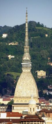 Not far from Via Po stands the symbol of Turin, namely the Mole Antonelliana, so named after the architect who built it, Alessandro Antonelli. Construction began in 1863 as a Jewish synagogue. Nowadays it houses the National Museum of Cinema and it is believed to be the tallest museum in the world at 167 m (548 ft). The building is depicted on the Italian 2-cent coin.