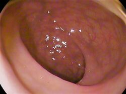 Unlike other portions of the colon, the rectum does not have distinct taeniae coli.[6] The taeniae blend with one another in the sigmoid colon five centimeters above the rectum, becoming a singular longitudinal muscle that surrounds the rectum on all sides for its entire length.[7][6]