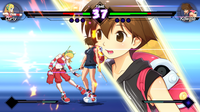 The game's character sprites were created by designing three-dimensional models for each fighter, rendering them in individual animation frames, then rasterizing those frames and performing additional cleanup by 2D artists.[11] According to director Toshinobu Kondo, the development team initially struggled to maintain balance due to some characters possessing weapons that gave them extra advantages.[12] The decision to simplify player inputs was due to a desire to make the game more accessible to those who do not normally play fighting games, as well as to reduce the data transfer and resulting input lag during online multiplayer battles.[11] The game's soundtrack was composed and performed by American rock band Ridiculon, with additional vocals performed by Siobhan Magnus.[13]