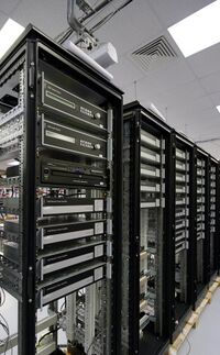 PA over IP refers to PA paging and intercom systems that use an Internet Protocol (IP) network, instead of a central amplifier, to distribute the audio signal to paging locations across a building or campus, or anywhere else in the reach of the IP network, including the Internet. Network-attached amplifiers and intercom units are used to provide the communication function. At the transmission end, a computer application transmits a digital audio stream via the local area network, using audio from the computer's sound card inputs or from stored audio recordings. At the receiving end, either specialized intercom modules (sometimes known as IP speakers) receive these network transmissions and reproduce the analog audio signal. These are small, specialized network appliances addressable by an IP address, just like any other computer on the network.[17]