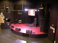 Small clubs, bars and coffeehouses use a fairly simple set-up, with front of house speaker cabinets (and subwoofers, in some cases) aimed at the audience, and monitor speaker cabinets aimed back at the performers so they can hear their vocals and instruments. In many cases, front of house speakers are elevated, either by mounting them on poles or by "flying" them from anchors in the ceiling. The Front of House speakers are elevated to prevent the sound from being absorbed by the first few rows of audience members. The subwoofers do not need to be elevated, because deep bass is omnidirectional. In the smallest coffeehouses and bars, the audio mixer may be onstage so that the performers can mix their own sound levels.[19] In larger bars, the audio mixer may be located in or behind the audience seating area, so that an audio engineer can listen to the mix and adjust the sound levels. The adjustments to the monitor speaker mix may be made by a single audio engineer using the main mixing board, or they may be made by a second audio engineer who uses a separate mixing board.