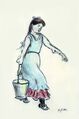 A young lady carrying a bucket, drawing by German artist Heinrich Zille