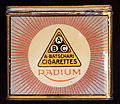As a result, an industry of radium- and radon-related products sprang up. People were not content with bathing in and drinking natural radioactive water at the springs and decided that they need to do it at home (radon decays relatively quickly, so radon water can't be transported over long distances). It got to the point where everything was advertising itself as containing radium, even if it didn't have any radium at all — some products used a cheaper substitute like thorium, while others just used the "radium" name as a gimmick.[3]