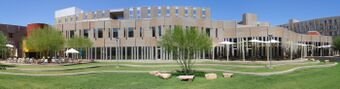 Established in 1984 by the Arizona legislature,[57] the West Valley campus sits on 277.92 acres (1.1247 km2) in a suburban area of northwest Phoenix. The West Valley campus lies about 12 miles (19 km) northwest of Downtown Phoenix, and about 18 miles (29 km) northwest of the Tempe campus. The West Valley campus is designated as a Phoenix Point of Pride[58] and is nearly completely powered by a solar array.[59] The campus serves more than 4,000 students enrolled in at least a single course[4] and offers more than 100 degree programs from the New College of Interdisciplinary Arts and Sciences, the Mary Lou Fulton Teachers College, W. P. Carey School of Business, College of Public Service and Community Solutions, College of Health Solutions, and the College of Nursing and Health Innovation.[60]