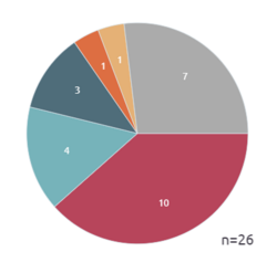 Foreign Elements in Orkhon Turkic by Etymology in Mehmet Ölmez's studies, 1995-1999. (n=26) Red: Chinese, Light Blue: Sogdian, Dark Blue: Mongolian, Orange: Tibetian, Flesh: Others, Grey: Unknown/uncertain