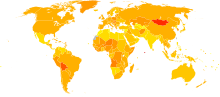 | Obesity | * | 10% | 14% women, 20% men, among non-smokers,[54] 10-20%,[6] 19-20% United States, 16-18% Great Britain, 13% Brazil, 11-12% China[55] |