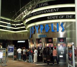 Beginning in 1994, Sega launched a series of indoor theme parks in Japan under a concept dubbed "Amusement Theme Park",[130] including Joypolis parks sited in urban Tokyo locations such as Yokohama and Odaiba.[131] A rapid overseas rollout was planned, with at least 100 locations across the world proposed to be opened by 2000,[19] however only two, Sega World London and Sega World Sydney, would ultimately materialise in September 1996 and March 1997, respectively.[132][133] Following on from difficulties faced in setting up theme parks in the United States, Sega established the GameWorks chain of urban entertainment centers in a joint venture with DreamWorks SKG and Universal Studios during March 1997.[134]