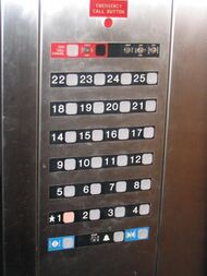 In most of the world, elevator buttons for storeys above the ground level are usually marked with the corresponding numbers. In many countries, modern elevators also have Braille numbers—often mandated by law.