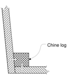 A hard chine is an angle with little rounding, where a soft chine would be more rounded, but still involve the meeting of distinct planes. Chine log construction is a method of building hard-chine boat hulls. Hard chines are common in plywood hulls, while soft chines are often found on fiberglass hulls.