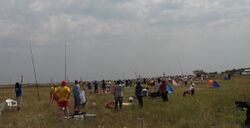 Because competitions normally involve up to seven rounds during the day, each flown to a maximum flight time hard to achieve without thermal assistance; an automatic on-board timeswitch upsets the trim of the aircraft when the "max" is achieved, to bring the aircraft down safely and quickly. Locating and recovering the aircraft for further flights is an important part of free-flight. Many aircraft carry radio location beacons, and flyers will use GPS, binoculars, a compass and a directionally sensitive radio tracking receiver to assist them. A day's flying and retrieval may well involve 20 miles (32 km) or so on foot or on bike, depending on wind strength.