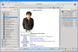On 23 June 2005, chairman of the Wikimedia Foundation announced that the KDE community and the Wikimedia Foundation have begun efforts towards cooperation.[34] Fruits of that cooperation are MediaWiki syntax highlighting in Kate and accessing Wikipedia content within KDE applications, such as Amarok and Marble.
