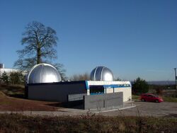 Located in North Staffordshire, Keele's campus is rural with many 19th-century architectural features such as Keele Hall predating the concrete and red-brick buildings of the modern university.[48] The campus occupies a 625-acre (253-hectare) rural campus close to the village of Keele and consists of extensive woods, lakes and Keele Hall set in Staffordshire Potteries. The estate was originally given by King Henry II of England to the Knights Templars in 1180. When the Templars were condemned and dissolved by the Council of Vienne in 1311, their possessions were annexed by the Knights Hospitallers until their dissolution by Henry VIII.[49] The estate was purchased from the Crown by the Sneyd family and remained their property until acquisition by the Stoke-on-Trent Corporation in 1948. Apart from increasing numbers of academic and residential buildings, other facilities include an astronomical observatory, arts and cultural programme, arboretum, Islamic centre, shops, cafés and places to eat and drink. The campus has science, business enterprise parks and conference centres. It is home to the Earth Science Education Unit (ESEU).[50] The chapel is located in the centre of the campus, close to the university library and student union. From the onset, Christian worship was central to university life. Lindsay, first principal of the University College, was an ardent Christian preaching every Sunday in the Library Reading room of Keele Hall.[51] A permanent structure was required and the chapel was built in 1965. Built from Staffordshire blue brick, the chapel accommodates different Christian traditions.