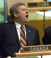 - Americanization of Canadian government: His policies emulate much of those perpetrated by the GOP, like having his soldiers trained by Blackwater,[39] torturing prisoners for information,[40] and supporting Israel "whatever the cost." This includes pushing Canada to become the first country to cut off financial aid and diplomatic relations with the Palestinian Authority after Hamas took power following Palestinian elections. In the summer of 2006, as Israel warred with Hezbollah, Lebanese civilian deaths led to calls for a ceasefire from other Western countries, except Canada, as Harper supported the vicious response from Israel. He even directed Canada to abstain from UN resolutions singling out Israel for its violations and abuses.[41]