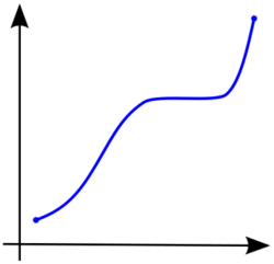 In calculus, a function [math]\displaystyle{ f }[/math] defined on a subset of the real numbers with real values is called monotonic if and only if it is either entirely non-increasing, or entirely non-decreasing.[2] That is, as per Fig. 1, a function that increases monotonically does not exclusively have to increase, it simply must not decrease.