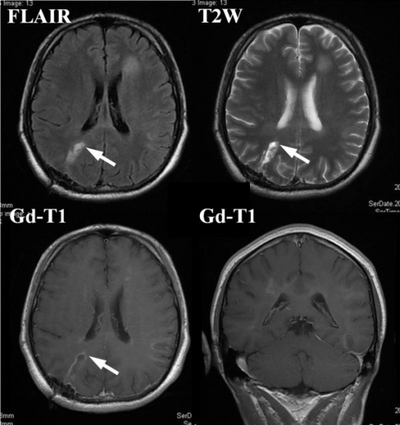 Usually tumefactive demyelination is monophasic, but cases with recurrence have been reported[16]